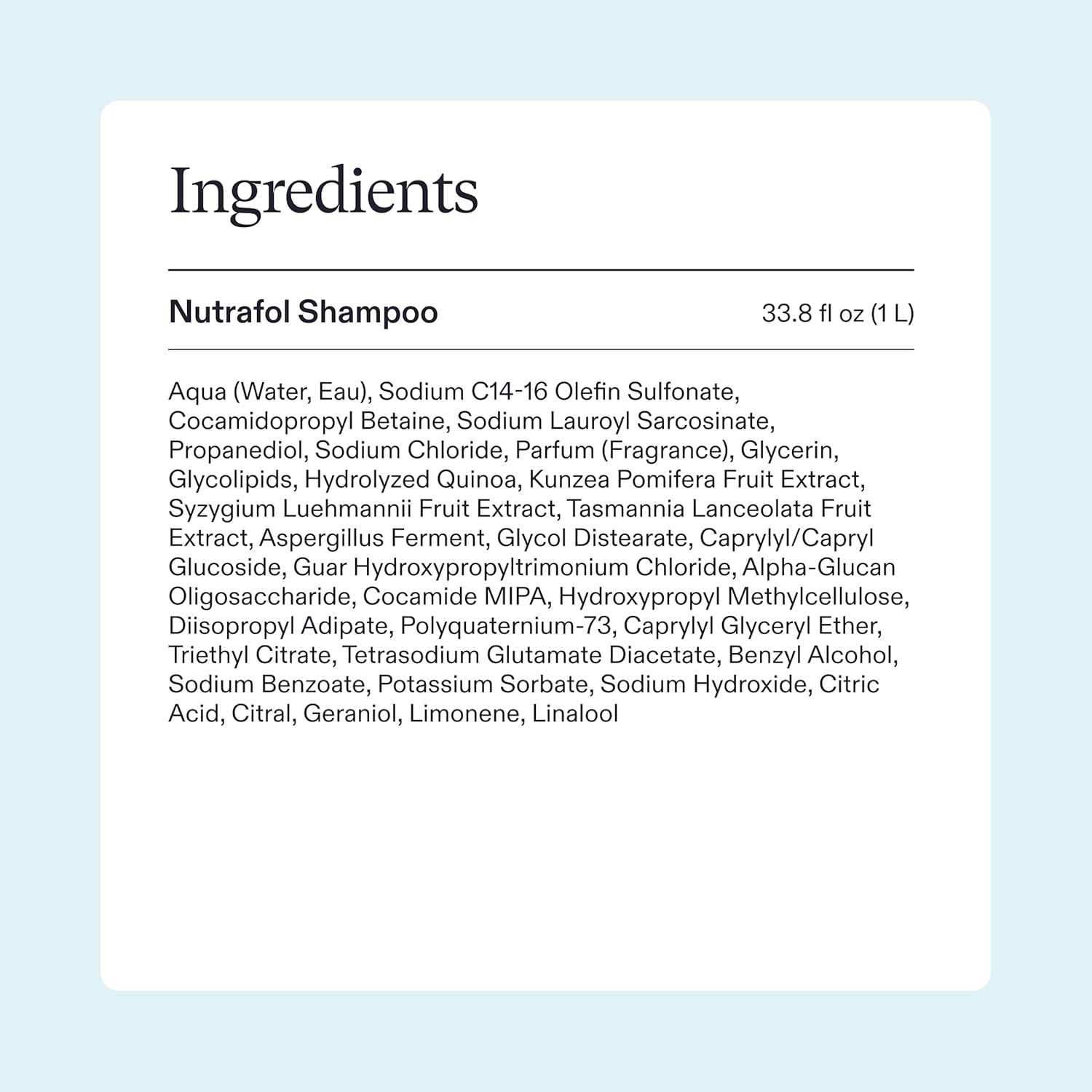 - Daily cleansing shampoo: One (1) 1-liter bottle of Nutrafol Root Purifier Shampoo is physician-formulated to hydrate the hair and scalp while improving volume and strength (1)
