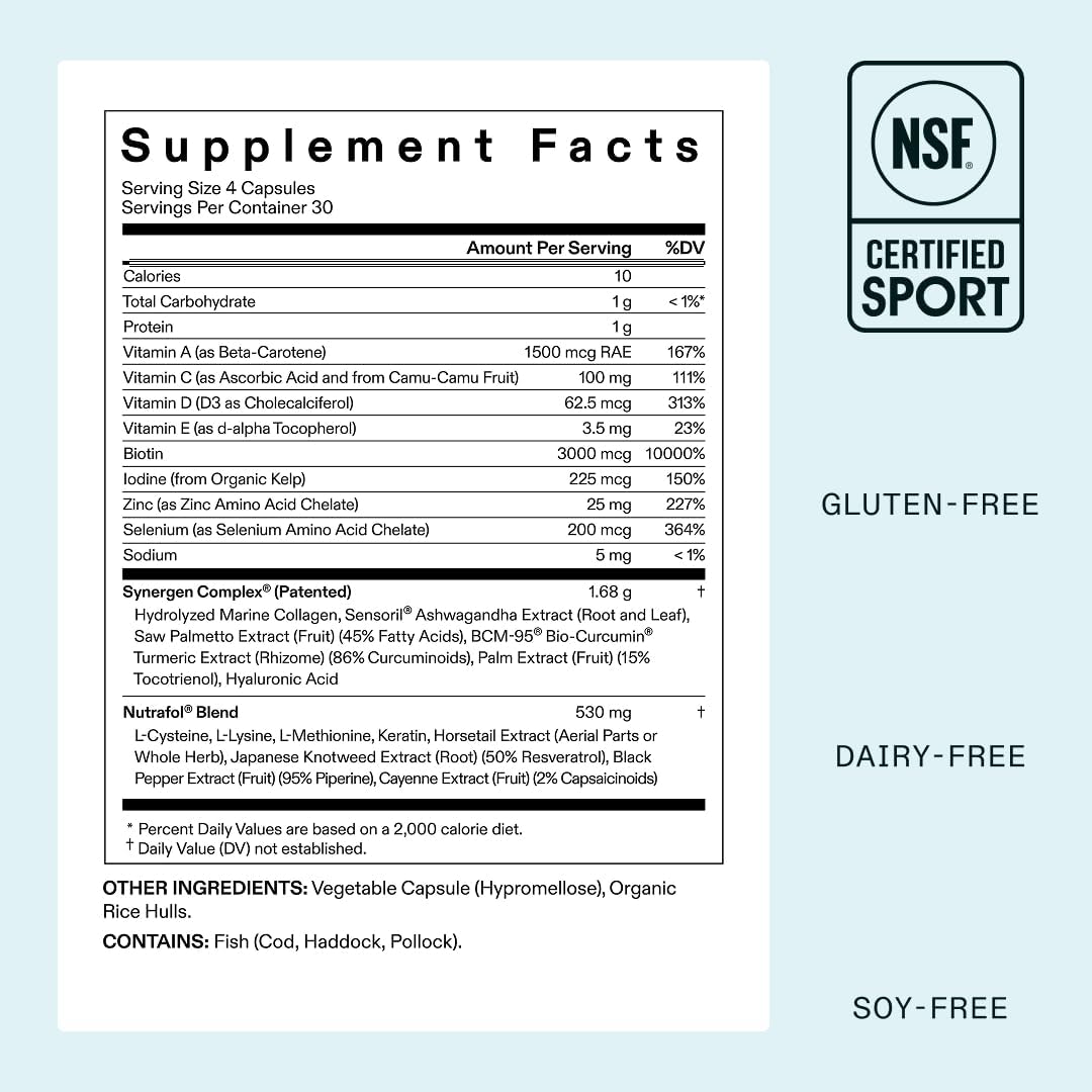 - 1-month supply: One (1) bottle of Nutrafol Women Hair Growth Supplements that promote faster-growing, visibly thicker, fuller, stronger hair (1,2)