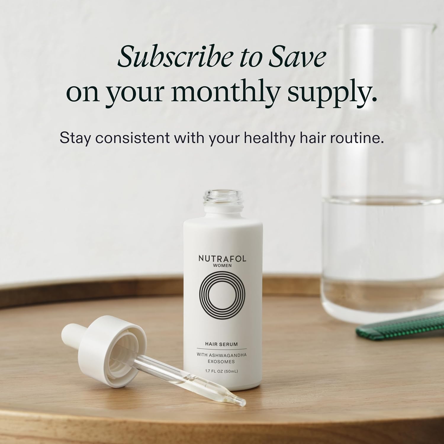 - Scalp serum for women: One (1) 1.7 fl oz bottle of Nutrafol Women's Hair Serum, a clinically tested scalp serum for visibly thicker, stronger hair (3,7)